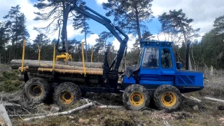 Med vår skogsmaskin kör vi ut virke, men kör även bort stubbar och ris vid t.ex. nyodling av åkermark.